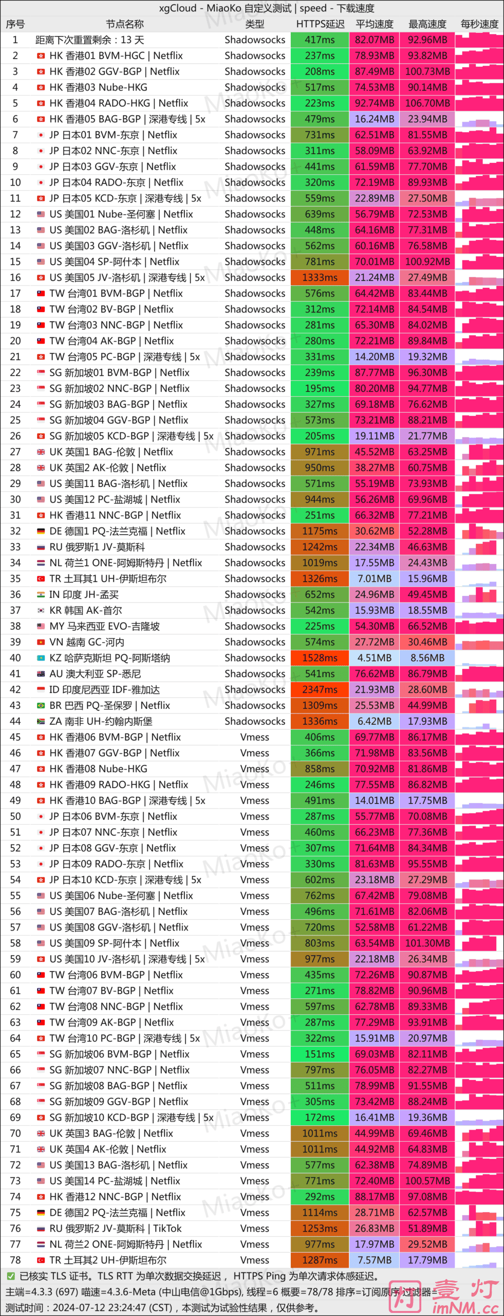 xgCloud是一家高速稳定的优质SS/V2Ray机场,使用BGP隧道中转和高端IPLC/IEPL专线,包括电信CN2、联通CU2、移动CMI和日本软银线路等顶级优质线路,以及部分直连优化线路和企业金融级IPLC/IEPL国际专线。目前,xgCloud在全球拥有近70条优质线路,其节点遍布于亚洲、美洲和欧洲等国家和地区,如中国香港、中国台湾、日本、新加坡、美国、韩国、俄罗斯、土耳其、德国、英国、荷兰、澳大利亚、泰国、印度尼西亚、马来西亚、印度、越南、瑞士、法国和哈萨克斯坦等,支持看奈飞Netflix/Disney+/HULU/HBO/TVB/TikTok/ChatGPT/动画疯等国外流媒体视频,部分线路支持解锁ChatGPT和TikTok等,能够很好地满足大多数场景的应用落地和用户需求,性价比非常高。
