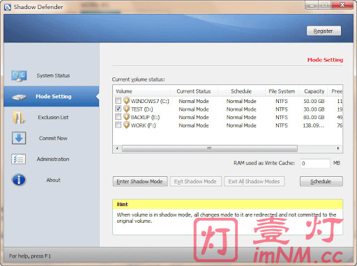 Shadow Defender(影子卫士) 是一款非常经典的系统虚拟化保护软件,极其轻量稳定。如果说 Sandboxie 是为单个程序戴上“手套”,那么 Shadow Defender 就是为整个磁盘分区套上了一层“透明保鲜膜”。Shadow Defender 不是隔离单个程序,而是让整个操作系统进入“影子模式”,重启后恢复原状,能有效防止系统被流氓软件篡改。你可以指定某个分区进入影子模式,期间的所有修改在重启后都会消失。