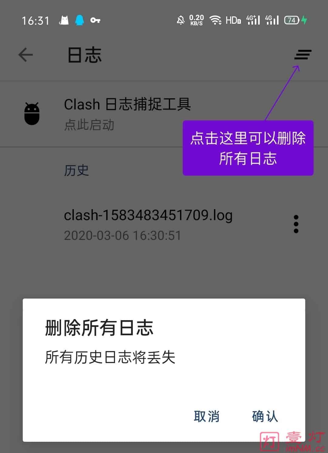 我们点击日志面板,然后选择Clash日志捕捉工具即可抓取日志。默认是关闭日志的,以防内存溢出。